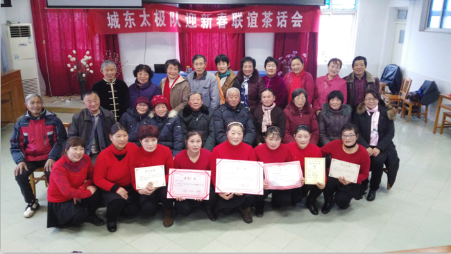 聯(lián)誼會(huì)上,太極隊(duì)隊(duì)長(zhǎng)胡建軍發(fā)言說(shuō):“城東太極隊(duì)在過(guò)去的一年里,多次參加射陽(yáng)縣舉辦的各項(xiàng)中老年人的活動(dòng),并屢次獲獎(jiǎng)。希望大家在新的一年里,繼續(xù)發(fā)揚(yáng)團(tuán)結(jié)友愛(ài)的精神,齊健身、同歡樂(lè)。”