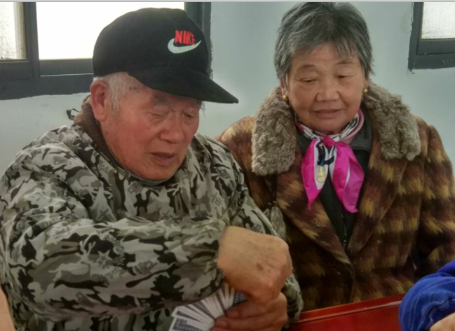退休后顧兆桃老兩口住在振興小區(qū)的四合院內(nèi),每天早上一起忙忙家里的自留地,一起做好家務(wù)的同時(shí)聊聊家常,經(jīng)常到附近的兒女家去看看。顧兆桃最大的愛好就是到城西居委會找老年人去摜蛋、“爭紅旗”,享受著退休后的樂趣。顧懷英有時(shí)也陪坐在顧爹的身后觀戰(zhàn),有時(shí)就去二兒子家開的小店里去幫忙照應(yīng)。晚飯后兩人就到附近的健身器材上去晃晃,塑膠跑道上去走走,有時(shí)老倆口時(shí)常開心的連走路都哼著歌。有人問他:“什么東西讓您老如此開心快樂?”顧兆桃卻樂呵呵地說:“托共產(chǎn)黨的福,退休后拿著這么高的工資,吃喝玩樂啥都有,每兩年還享受一次免費(fèi)體檢的機(jī)會,你不感覺到這很快樂嗎?這開心的日子以前到哪里去找……”