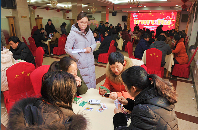 通過“迎新春”摜蛋比賽平臺的參與,有效增進了職工之間的溝通與交流,營造了良好的企業文化氛圍。圖為淮海公司代表隊在2018“迎新春”摜蛋比賽現場的鏡頭。