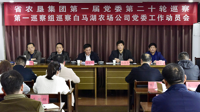 根據集團黨委統一部署,2021年4月12日,省農墾集團第一屆黨委第二十輪巡察第一巡察組巡察白馬湖農場公司黨委工作動員會召開。會前,集團黨委第一巡察組組長潘世和主持召開與農場公司黨委書記姚春華的見面溝通會,傳達了省委和集團黨委關于巡察工作的最新精神,通報了這次巡察的主要任務、工作安排和工作要求。會上,潘世和作了動員講話,對做好巡察工作提出要求。姚春華主持會議并作表態發言。