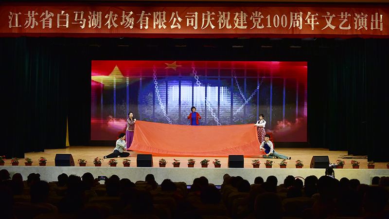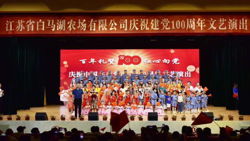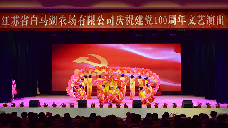 為慶祝中國共產(chǎn)黨成立100周年,回顧中國共產(chǎn)黨團(tuán)結(jié)帶領(lǐng)全國各族人民戰(zhàn)勝各種艱難險(xiǎn)阻、譜寫中華民族自強(qiáng)不息的光輝歷程,感悟中國共產(chǎn)黨歷經(jīng)百年始終不渝的初心使命,共同抒發(fā)在黨的堅(jiān)強(qiáng)領(lǐng)導(dǎo)下奮進(jìn)新時(shí)代的壯志豪情,讓廣大干部職工在紅色氛圍中學(xué)習(xí)黨史、展示風(fēng)采,推進(jìn)黨史學(xué)習(xí)教育和“四史”宣傳教育不斷走深走實(shí),6月29日下午,白馬湖農(nóng)場(chǎng)公司在職工會(huì)堂成功舉辦了“百年禮贊、紅心向黨 ”慶祝中國共產(chǎn)黨成立100周年文藝演出。