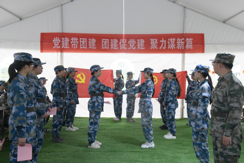5月13日,淮海農(nóng)場(chǎng)有限公司黨委和團(tuán)委開展“黨建引領(lǐng)、團(tuán)建賦能、凝聚青春奮斗力量”主題活動(dòng),近50名40周歲以下青年員工來到連云港云水灣拓展基地,開展戶外拓展活動(dòng)。圖為青年員工在開展“黨建帶團(tuán)建 團(tuán)建促黨建 聚力謀新篇”黨團(tuán)員結(jié)對(duì)儀式。