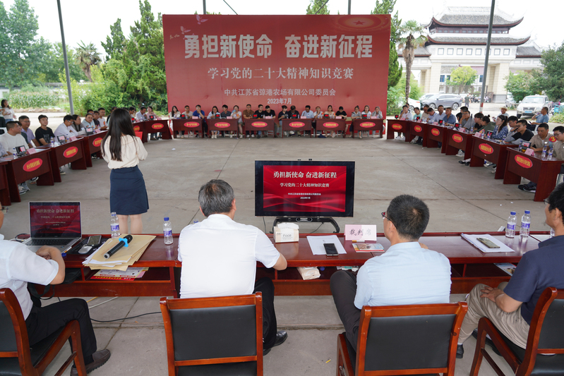 為持續推動深入學習宣傳貫徹習近平新時代中國特色社會主義思想和黨的二十大精神,切實做到學思用貫通,知信行合一,7月4日下午,弶港農場組織開展“勇擔新使命 奮進新征程”學習黨的二十大精神知識競賽活動。來自各單位部門的19支隊伍57名選手參加本次競賽,全場管理人員、部分居民到場觀看。