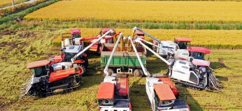 10月25日,蘇墾農(nóng)發(fā)江心沙分公司搶抓晴好天氣,組織收割機(jī)集中開展大規(guī)模水稻收割作業(yè),切實將“豐收在望”轉(zhuǎn)化為“豐收到手”,彰顯農(nóng)業(yè)“國家隊”擔(dān)當(dāng)。收割現(xiàn)場,收割機(jī)、運(yùn)糧車來來往往,一片繁忙景象。