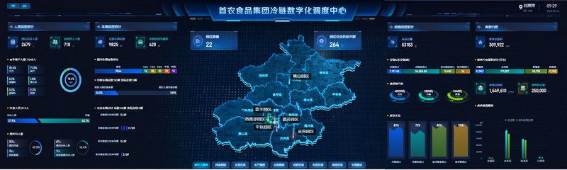 近年來(lái),五環(huán)順通全面推動(dòng)冷鏈物流提檔升級(jí),建立了人、車(chē)、貨、庫(kù)全鏈路的冷庫(kù)溯源管理信息系統(tǒng),大廳的智慧大屏可以實(shí)時(shí)查看多維度的冷鏈物流運(yùn)送信息。