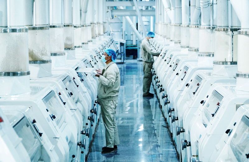 位于北京糧油食品應(yīng)急保障中心園區(qū)東北角的古船食品福興面粉廠(chǎng)正開(kāi)足馬力加緊生產(chǎn)。該廠(chǎng)建筑面積為2萬(wàn)平方米,設(shè)計(jì)產(chǎn)能為日處理小麥1200噸、日產(chǎn)面粉800噸,生產(chǎn)近六七十種不同品類(lèi)的產(chǎn)品,可滿(mǎn)足不同使用場(chǎng)景的消費(fèi)需求。