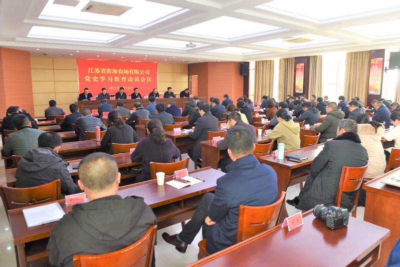3月18日上午,淮海農場有限公司召開淮海領導班子全體成員、社區主任助理、各基層黨組織負責人,副科級以上管理人員,駐場單位負責人和農場公司黨史學習教育辦公室全體人員參加的黨史學習教育動員會議,深入學習貫徹習近平總書記在黨史學習教育動員大會上的重要講話精神,認真貫徹落實中央、省委、集團公司黨委黨史學習教育各項要求,對全場黨員干部和管理人員進行黨史學習教育動員部署。