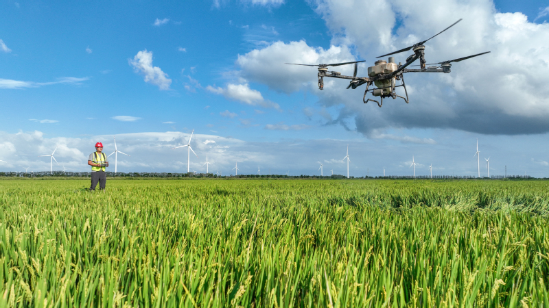 9月22日,蘇墾農(nóng)發(fā)新洋分公司組織搭載有北斗導(dǎo)航系統(tǒng)的植保無人機(jī),對(duì)處于灌漿期的水稻進(jìn)行秋季田管作業(yè)。