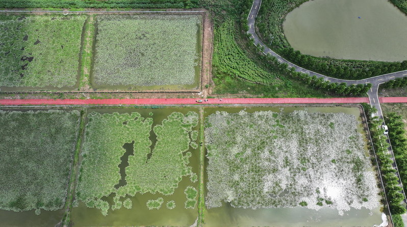 盛夏七月,蘇墾農(nóng)發(fā)東辛分公司西洋生產(chǎn)區(qū)20大隊(duì)的田野里,一幅現(xiàn)代農(nóng)業(yè)的壯美畫卷正徐徐展開。林帶東西兩側(cè)呈現(xiàn)出截然不同卻又和諧共生的“雙景圖”:一側(cè)是整齊的大豆玉米帶狀復(fù)合種植田,高矮作物錯(cuò)落有致,綠意盎然;另一側(cè)則是一望無際的蔥郁水稻田,挺拔的秧苗已進(jìn)入拔節(jié)初期。這正是東辛農(nóng)場(chǎng)“穩(wěn)糧擴(kuò)油”發(fā)展戰(zhàn)略的生動(dòng)寫照。