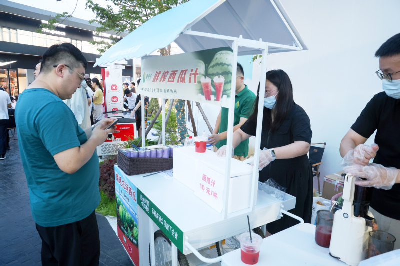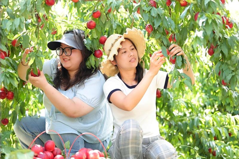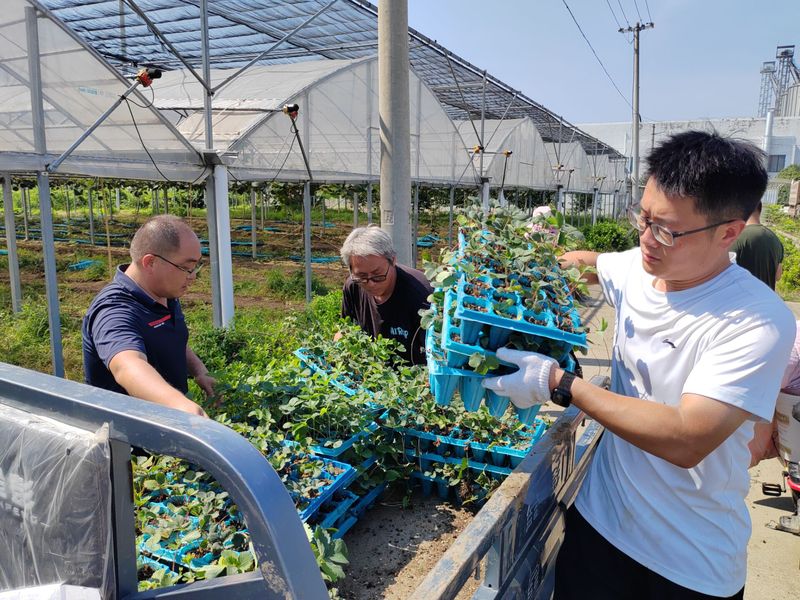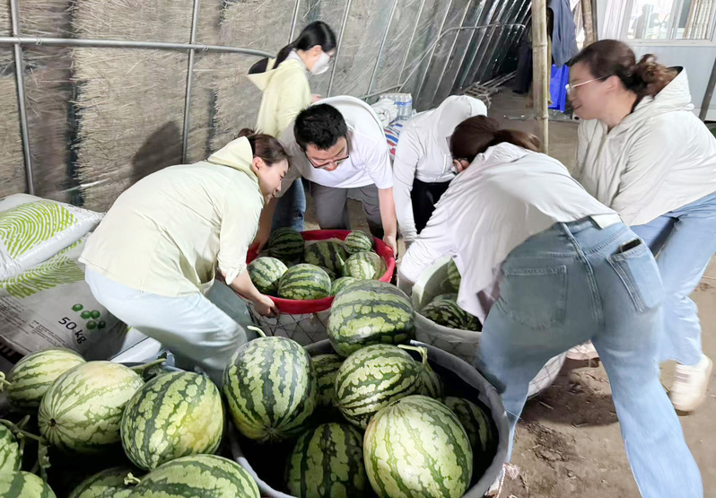 “產(chǎn)業(yè)中心急需支援!”6月12日下午3點,東壩頭農(nóng)場工作群消息剛彈出,20多名農(nóng)場機關(guān)青年已沖向西瓜地。烏云壓頂,一場與暴雨的賽跑就此展開。在6大隊15號田地里,青綠的西瓜藤蔓間閃動著忙碌的身影。男同志們喊著號子將沉甸甸的瓜筐抬上三輪車,女同志們抱著10多斤的西瓜接力傳遞。“輕點放!”“這邊再來一筐!”產(chǎn)業(yè)發(fā)展中心龔玲玲的提醒混著此起彼伏的應(yīng)答聲。此時的天空已開始飄落淅淅瀝瀝的雨絲,泥水濺上褲腿,汗珠滾落臉頰,54筐西瓜在40分鐘內(nèi)全部安全入倉。“咱們這速度,能拍動作片了!”負責(zé)裝車的王瑋琦抹著汗笑道。豆粒大的雨點終于砸了下來,這群年輕人相視而笑,沾滿泥點的鞋子在田埂上留下一串深深淺淺的印記。